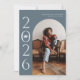 Cartão de anúncio de na moda e graduação moderna para enviar para a família e os amigos. Há um arco azul de aço ao redor da sua foto. Você pode adicionar uma segunda imagem no verso e a mensagem é editável. O ano é escrito de lado com uma ilustração de um dentro boné de formatura do número zero.