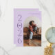 Cartão de anúncio de na moda e graduação moderna para enviar para a família e os amigos. Há um quadro de arco de lavanda ao redor da sua foto. Você pode adicionar uma segunda imagem no verso e a mensagem é editável. O ano é escrito de lado com uma ilustração de um dentro boné de formatura do número zero.