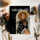 Na moda e cartão único de anúncio de graduação para enviar para a família e os amigos. Há um quadro de arco preto ao redor da sua foto. Diz "formando" no topo com o seu nome escrito por baixo numa letra retrógrada.
