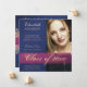 Um lindo anúncio de graduação em azul de cobalto, fúcsia e grunge roxo ou convite festa de formatura. Um para combinar com o batom! Adicione facilmente sua própria foto e textos. Para a formatura de uma menina do segundo grau, do ensino médio, da faculdade ou da universidade.