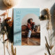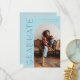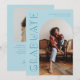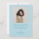 Cartão de anúncio de na moda e graduação moderna para enviar para a família e os amigos. Há um quadro de arco azul ao redor da sua foto. Você pode adicionar uma segunda imagem no verso e a mensagem é editável. Diz "formando" na lateral da carta em fontes celestiais e boho tipografia.
