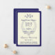 Este anúncio formal de formatura elegante apresenta uma borda azul real e iniciais monográficas no topo. O embelezamento do estilo caligrafia do ornamentado no centro e a marca d'água laurel lhe dá um toque de classe. Personalize esses anúncios com suas informações de graduação. Há também muito espaço nas costas para mais informação. Este design funciona melhor com cantos arredondados, para retângulo ou quadrado, por favor veja o seguinte: