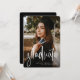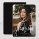 Comemore seu segundo grau ou formando universitário com este anúncio vertical de graduação em uma foto. A escritura moderna "formando" na frente em branco é perfeita para um formando de tendência. O backer é um preto clássico chic com um padrão sutil, mas a cor pode ser alterada para qualquer cor da escola clicando em "personalizar".
