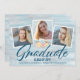 Anuncie a formatura do seu filho com este cartão único de anúncio de formando moderno de 3 fotos na praia do na moda, que é facilmente personalizável para as suas próprias necessidades. Você pode usar o verso para obter mais informações, se necessário, ou como um convite para festa de formatura.