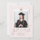 Anúncio de Graduação Moderna Elegante Elegante Cor-de-Rosa e Rosa Dourada. Este cartão de anúncio de graduação em na moda apresenta um elegante roteiro rosa dourado e duas fotos para personalização, 1 na frente e atrás. A foto foi projetada para se parecer com um instantâneo vintage enquanto ainda é na moda para o formando de hoje.