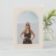Um anúncio de graduação moderno com um arco fotográfico e tipografia limpa.