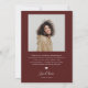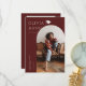 Cartão de anúncio de na moda e graduação moderna para enviar para a família e os amigos. Há uma trama vermelha ao redor da sua foto. Seu nome pode ser adicionado ao topo junto com a ilustração de um boné de formatura.