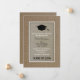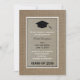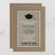 Procurando um anúncio de graduação único, na moda e moderno? Este anúncio de graduação é um anúncio. Apresentando um boné de formatura preto sobre um fundo de burlap claro, que parece estar enquadrado em branco com uma burvolta mais escura ao redor do branco, esse anúncio de graduação pode ser personalizado com o nome do formando, da escola e da data, juntamente com qualquer informação importante que você queira compartilhar com seus destinatários. Direitos autorais