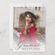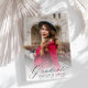 Design de caligrafia e uma foto personalizada. Este design de placa de graduação tem anúncio no convite inicial e festa de formatura no verso. Você pode mudar a foto e outros detalhes.