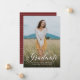 Este anúncio de graduação simples e clássico apresenta uma grande foto vertical e a palavra "formando" na escrita. O backer de coordenação pode ser personalizado com a escolha de uma escola ou cor favorita (clique no botão "personalizar", selecione "voltar" e, em seguida, "selecionar uma cor de fundo").
