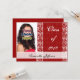 Convite para fotos de vermelho e branco. Personalize o texto e as fotos. Adicione detalhes no verso. Anuncie o dia especial com este adorável convite. design de damask com estilo vermelho e branco, com bonito script de cinta escrevendo.