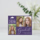 Anúncio simples de graduação roxo, com orçamento favorável, apresentando uma colagem de fotos de 3 fotos e um "Formando" em um elegante roteiro branco. Adicione o nome do formando, ano de aula e escola ou universidade na tipografia branca moderna.