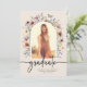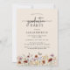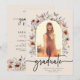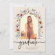 Anúncio de Graduação Floral e convite para festa no verso. Este anúncio de graduação elegante e sofisticado apresenta belas flores silvestres pintadas à mão em aquarela, dispostas como um lindo buquê e uma caligrafia elegante. O verso inclui um convite para a festa de graduação. Encontre produtos correspondentes na Coleção de Graduação Boho Wildflower.
