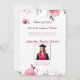 Este elegante anúncio de graduação floral apresenta um design de aquarela suave com flores roxas e cor-de-rosa moldando o texto. Os sotaques dourados e a letra na moda adicionam um toque sofisticado, enquanto um pequeno ícone de boné de formatura rosa melhora o tema comemorativo. Perfeito para honrar um formando com uma estética clássica e feminina. Totalmente personalizável para detalhes pessoais.