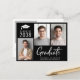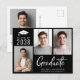 Cartão postal de anúncio de graduação preto moderno com 3 fotos e "Graduado" em uma fonte contemporânea em branco negrito. Adicione o nome do graduado, ano de conclusão e escola ou universidade em tipografia branca simples.
