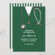 Anúncio de formatura de enfermagem criativa para formando de enfermagem com esfregões de hospital verde.