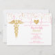 Anúncio de formatura na escola de enfermagem em rosa e ouro com ícone médico, Caduceus.