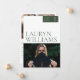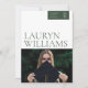 Este anúncio de graduação moderno apresenta uma foto horizontal de solteiro na parte inferior, realçada por um tipo grande com o nome do formando. O nome da escola e o ano de graduação são destacados no topo do anúncio. Este anúncio de graduação tem um aspecto profissional e voltado para os negócios, perfeito para destacar os sucessos do formando. O verso do anúncio contém duas fotos adicionais que podem ser usadas para mostrar fotos de infância do formando crescendo, juntamente com um espaço para uma mensagem mais longa. A cor do sotaque pode ser ajustada para corresponder às cores da sua escola.