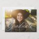Um anúncio clássico e elegante com script de graduação em branco na parte inferior de uma foto horizontal. O texto personalizado inclui espaço para o nome do graduado, bem como detalhes da escola e do ano. O fundo cinza carvão escuro tem um padrão de grade simples e a cor pode ser alterada clicando em "personalizar ainda mais". Anuncie a conquista do seu graduado para amigos e familiares com este design!
