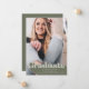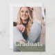 Este anúncio de graduação apresenta um na moda com a palavra formando em uma tipografia de estilo retrô-verde-oliva. Este anúncio apresenta uma foto do tamanho de um cheio na frente e um simples retrocesso verde-oliva. Cores e estilos adicionais disponíveis em nosso compro para personalização adicional, envie-nos mensagem através do zazzle ou entre em contato conosco em sabrina@o-r-studio.com