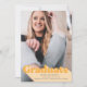 Este anúncio de graduação apresenta um na moda com a palavra formando em uma tipografia de estilo retrô-mostarda amarela ouro. Este lançamento apresenta uma foto em tamanho de cheio na parte frontal e uma simples ouro amarela na parte traseira. Cores e estilos adicionais disponíveis em nosso compro para personalização adicional, envie-nos mensagem através do zazzle ou entre em contato conosco em sabrina@o-r-studio.com
