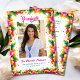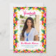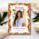 Este divertido anúncio de graduação tropical apresenta uma luxuosa borda floral de flores de hibisco brilhantes e uma foto do formando. A parte traseira do cartão contém os detalhes do seu anúncio. Você pode ajustar o texto para fazer deste um simples anúncio de graduação ou um convite de festas de formando. Adicione detalhes de sua escolha, como planos futuros de educação de Formandos, honras especiais, etc. DICA DA FOTO: Para obter melhores resultados, recorte a sua foto para uma forma semelhante antes de carregar. Um na moda, design tropical para celebrar o dia especial do seu formando. Parabéns ao Formando!