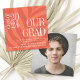 Anuncie orgulhosamente a graduação de seu aluno na Classe 2024 (ou em qualquer ano de aula) com este colorido Anúncio de Graduação de Foto em cores ousadas modernas de laranja de dois tons. Este simples design tropical orgânico apresenta uma folha de palma em laranja claro sobre um fundo laranja ousado. As pinturas divertidas usam a tipografia como um fazer de elemento design neste pop de lançamento com estilo. A parte traseira da placa tem um modelo de foto para adicionar uma foto favorita do formando e tornar este design mais pessoal. A forma quadrada do cartão de anúncio adiciona singularidade e uma vibração legal. Este item pode ser encomendado como anúncios impressos para envio por correio ou como um download digital sem papel para envio eletrônico aos seus amigos, familiares e associados.