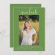 Anuncie sua formatura com este anúncio elegante de graduação verde de roteiro. Adicione uma foto e personalize o texto na frente e atrás para criar seu próprio anúncio de graduação exclusivo. Este convite está disponível em diversas cores. Visite minha coleção de graduações para ver todas as opções.