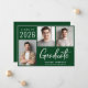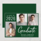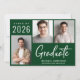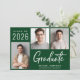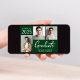 Anúncio de formatura verde moderno com 3 fotos e "Graduado" em uma fonte branca contemporânea e negrito. Adicione o nome do graduado, ano de conclusão e escola ou universidade em tipografia branca simples.