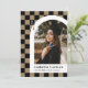 O anúncio e o Convite de festas de graduação controlados modernos é uma forma na moda e distinta de celebrar as conquistas do formando em sua vida. Com seu design contemporâneo e personalizáveis recursos, este anúncio combina perfeitamente elegância com talento, fazer-o a escolha perfeita para comemorar essa ocasião marco. A frente do anúncio apresenta um fundo de controle preto e bronzeado impressionante, servindo de pano de fundo para uma fotografia do formando. A fotografia é lindamente emoldurada num arco branco, destacando o retrato do formando com sofisticação. Por baixo do arco, o nome do formando e a escola são exibidos de forma destacada, acrescentando um toque pessoal ao anúncio. Um pequeno boné de formatura, inteligentemente integrado ao fundo controlado, significa a conquista do formando, com seu ano de graduação sutilmente incorporado. Sacudir o anúncio para trás, onde um padrão verificado de correspondência divertida em ouro tan e preto define o palco para o convite de festa de formatura. Aqui, os hóspedes encontrarão todos os detalhes de que precisam para se juntar na celebração e honrar os feitos do formando. O design e os elementos personalizáveis pensativos fazem deste anúncio uma escolha ideal para casais que desejam compartilhar sua alegria e entusiasmo de uma forma moderna e única. Comemore as conquistas do formando em sua vida com o anúncio e Convite de festas moderno de graduação controlada. Personalize, compartilhe e honre suas realizações com estilo e talento.