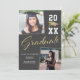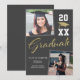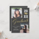 Anuncie a grande conquista do seu graduado com esses anúncios de graduação modernos com duas fotos. Personalize a data de graduação com sua própria cor e fonte. Este design apresenta detalhes em dourado falso. Detalhes e fotos adicionais podem ser adicionados na parte de trás, incluindo detalhes da festa.