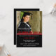 Um moderno anúncio de graduação em preto e vermelho, projetado para incorporar uma fotografia de quem se forma.