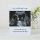 Cartão com fotos simples e moderno do anúncio de gravidez. Personalize a design com sua própria foto de sonograma ou de maternidade e personalize o texto conforme desejar. O texto atual diz "Apenas um pequeno comentário para dizer que o nosso pacote de alegria está a crescer dia após dia". O modelo está configurado para que você adicione sua mensagem de anúncio de gravidez personalizada, data de vencimento do bebê e nome(s) no verso. O design tem uma paleta colorida de azul claro com tipografia preta. Por favor, procure mais designs na minha loja.