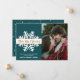 Branca de Teal Moderna e Cartões de Anúncio de Gravidez de Natal Dourado. Esperando pais! Bonito escrita com letra tipográfica "mais o melhor" para compartilhar suas boas notícias com a família e os amigos na temporada de festas. Apresenta um enorme floco de neve branco com um pequeno sotaque dourado sobre fundo de cor verde e um molde fotográfico. Nos pontos brancos de fundo de neve em fundo lacrimogêneo. É fácil personalizar sua mensagem e carregar sua foto. Se precisar de ajuda ou itens correspondentes, entre em contato com o designer!