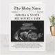 Se você está procurando uma maneira criativa de anunciar sua emocionante notícia, esse cartão de anúncio de gravidez no estilo do jornal é a escolha perfeita. Este cartão apresenta uma busca divertida por palavras de bebês e uma seção de predições de bebês fazer mais estilo de jornal. Inclua uma fotografia de um sonograma da sua pequena e algumas fotos de gravidez para tornar seu anúncio ainda mais exclusivo.