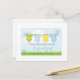 Um cartão postal de anúncio de gravidez caprichoso com uma fileira de roupas de bebê penduradas em uma linha de secagem em um ambiente de primavera ou verão, com grama e pássaros. Estilo moderno e fofo. Adicione os nomes e a data prevista. Tons pastel suaves de amarelo, verde e azul.