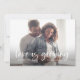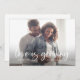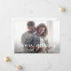 Cartão de anúncio de gravidez de na moda com um texto de roteiro de sobreposição que diz "o amor está crescendo." Você pode adicionar 3 fotos neste cartão (frontal e traseira).
