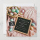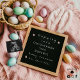 Celebre a sua grande notícia nesta Páscoa com este adorável anúncio de gravidez com ovos coloridos vibrantes, um belo ouvido de coelhinho e um conselho de cartas divertido! Ideal para anunciar seu pacote de alegria durante a estação de primavera, esta design é a maneira perfeita de compartilhar sua gravidez com a família e amigos de uma forma festiva e memorável.