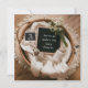 Celebre as novidades do seu lindo bebê com este adorável cartão de anúncio de gravidez rústico, apresentando uma encantadora cesta tecida, um doce coelho de crochê e delicados acessórios de mamadeira. Concebido com tons terrosos suaves e uma estética boho aconchegante, este cartão de recordação é perfeito para anunciar a gravidez aos avós, familiares e amigos próximos. O estilo artesanal quente cria uma revelação emocionante e memorável, tornando-o ideal para anúncios do primeiro bebê, revelações de bebês neutras em termos de gênero e lembranças familiares preciosas.