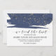 Estes marinhos de aquarela e cartões de anúncio de elopemento dourado têm um belo design elegante. O cartão diz "Nós Ligamos o Nó!". Este abstrato estrelado design de noite apresenta um pincel dramático de marinho azul-aquarela sobreposta com uma bela falso brilho dourado. Nota: Este design não apresenta brilho de ouro real. É um gráfico de alta qualidade feito para parecer um brilho dourado.