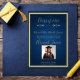 Anúncio de graduação em azul e ouro do marinho elegante com fontes de script de na moda e uma foto personalizável. Perfeito para celebrar a conquista do seu formando com um design clássico e sofisticado. Personalize para um toque pessoal!