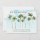 Anúncio em movimento por na moda com uma fila de palmeiras tropicais sobre fundo branco, com coordenação para um toque especial extra.