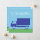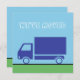 No topo, você pode editar o texto que atualmente lê 'Nós nos movemos' em letras grandes brancas que parecem ser nuvens em um céu azul. Abaixo está um caminhão em movimento no qual você pode personalizar seu anúncio em movimento com seu nome e novo endereço também em texto branco em um caminhão azul escuro.