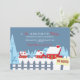 Uma cena de inverno de casas cobertas de neve com árvores e uma cerca colhida. Um sinal de "nós nos movemos" é visível no jardim da frente. Mande-o junto com um cartões de natal ou envie-o durante os meses de inverno para anunciar sua jogada.