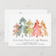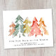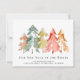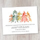 Anúncio em movimento elegante com uma floresta aquosa de pinheiros abstrato em verde-mudo, vermelho, ouro e laranja. Personalize o texto "Nosso Novo Pescoço das Florestas", seu nome de família e seu novo endereço. No verso, personalize seu anúncio com mais detalhes e inclua números de telefone e endereços de e-mail, se desejar.