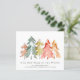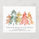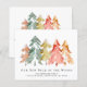 Anúncio comovente simples e elegante, com uma bela floresta aquosa de pinheiros abstrato em verde-mudo, vermelho, ouro e laranja. Na frente, personalize o texto "Nosso Novo Pescoço das Florestas", seu nome de família e seu novo endereço. No verso, você pode personalizar seu anúncio com mais detalhes e incluir números de telefone e endereços de e-mail, se desejar.