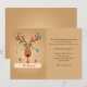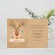 Uma maneira adorável de enviar cartões de natal e informar a família e os amigos do seu novo endereço. O cartão apresenta uma rena cujas galhadas estão amarradas com decorações de Natal.