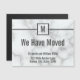 O anúncio em movimento do mármore branco falso tem um lugar para adicionar seu monograma no topo. No meio, você pode digitar sua mensagem personalizada. (Mostra: Nós nos mudamos). Na parte inferior, há texto de cinza para seu nome e novo endereço.
