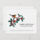 Num fundo de papel branco texturizado a aquarela, uma ave de inverno fofa fica sentada num galho de folhas verdes e bagas vermelhas anunciando sua mudança durante as férias. Este cartão de lançamento móvel do orçamento o ajudará a economizar tempo durante sua movimentação, combinando seu cartão de Natal anual com suas novas informações de endereço residencial. Todo texto pode ser facilmente revisado no modelo de personalização.