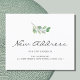 Avise a família e os amigos que você mudou com estes anúncios modernos e na moda. Eles apresentam um verde-aquarela simples e uma tipografia de script que diz "Novo Endereço". Use a Ferramenta Design para alterar o tamanho, o estilo ou a cor do texto. Original Watercolor © Michele Davies.